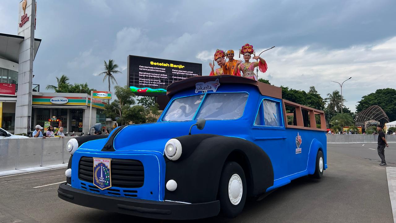 Parade Jakarta Global, yang menampilkan kendaraan hias dengan beragam tema budaya, karakter animasi, serta