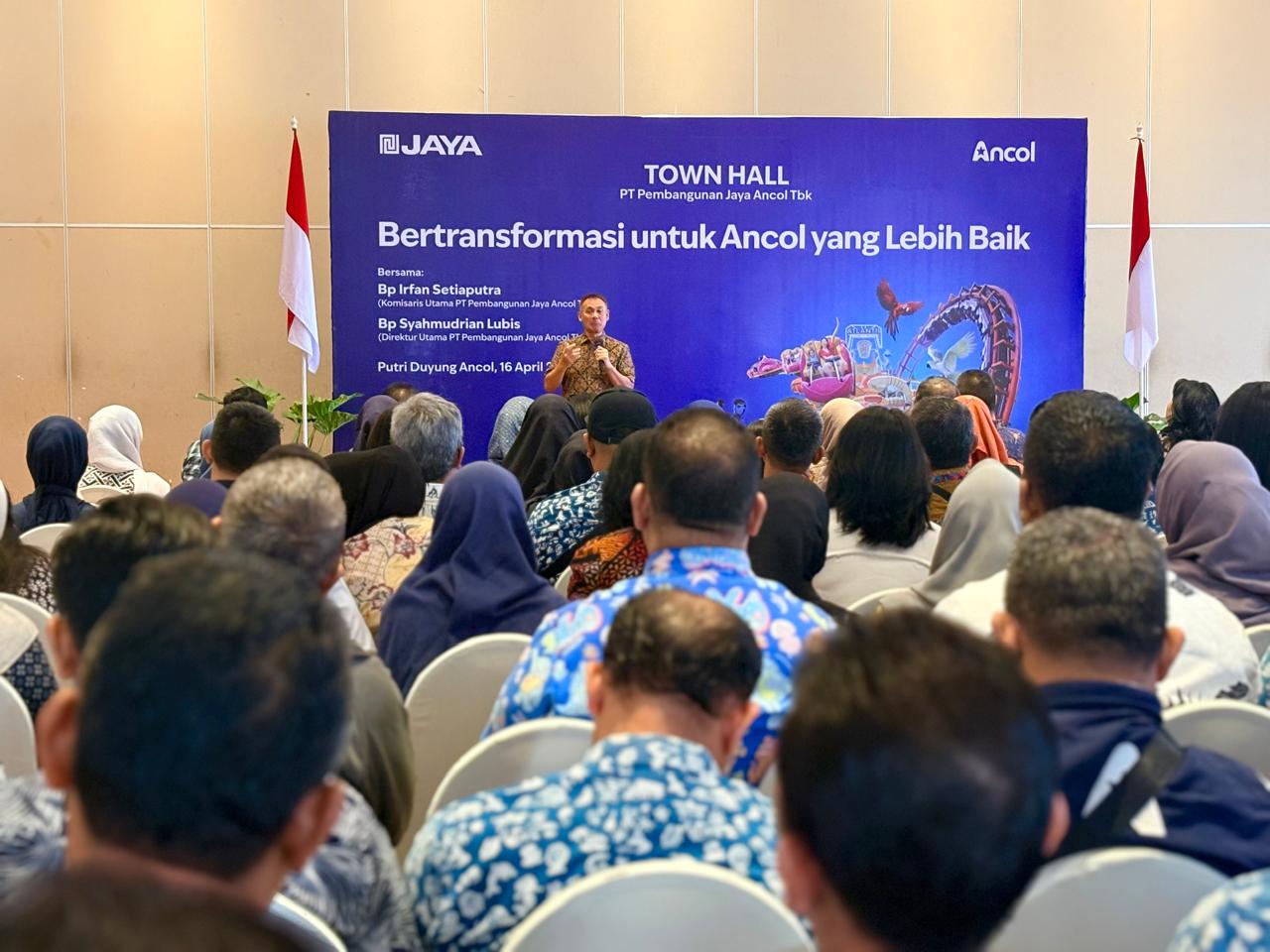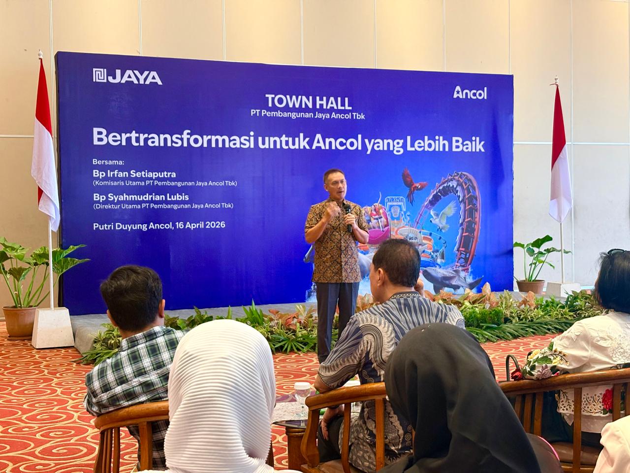 PT Pembangunan Jaya Ancol Tbk, dengan susunan Dewan Direksi yang baru, mengadakan Town Hall Meeting dengan Tema Bertransformasi untuk Ancol yang Lebih Baik, 16 April 2026 di Candi Bentar Putri Duyung Ancol.